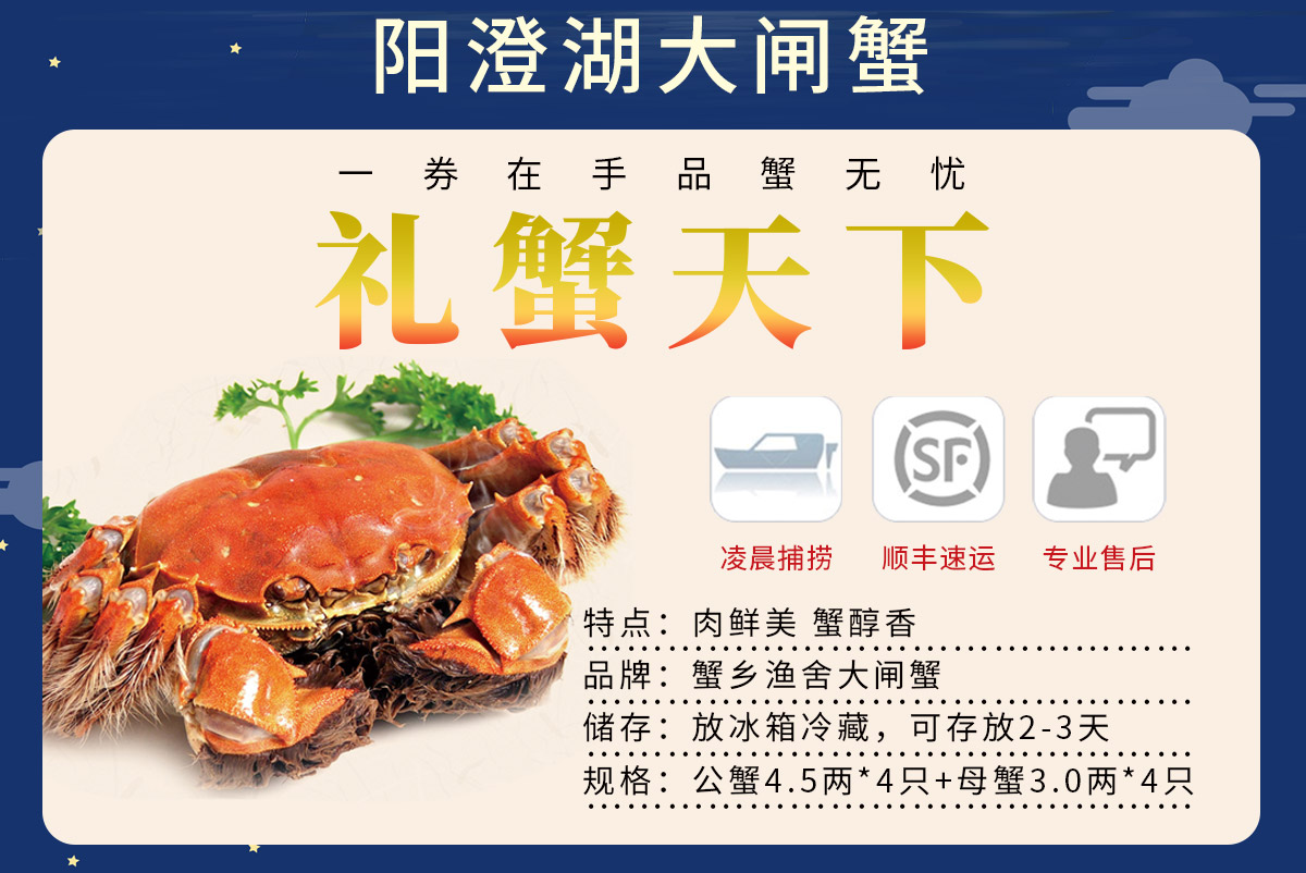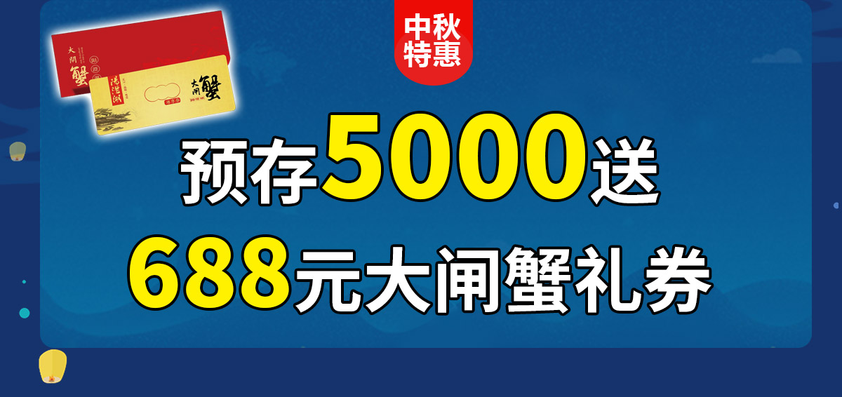 中秋国庆送礼充值5000元送价值688元大闸蟹礼券